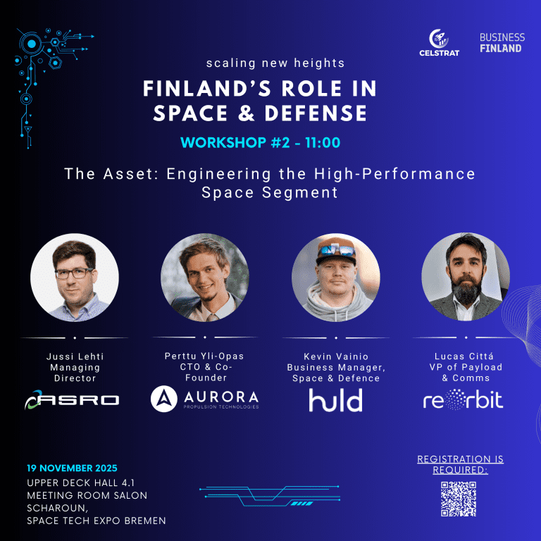 Our team is at the Space Tech Expo Europe in Bremen. Come and visit our booth #802. Also, today our CTO Perttu Yli-Opas and CEO Pekka Blomberg are speaking at the Finnish side event – Finland’s Role in Space and…